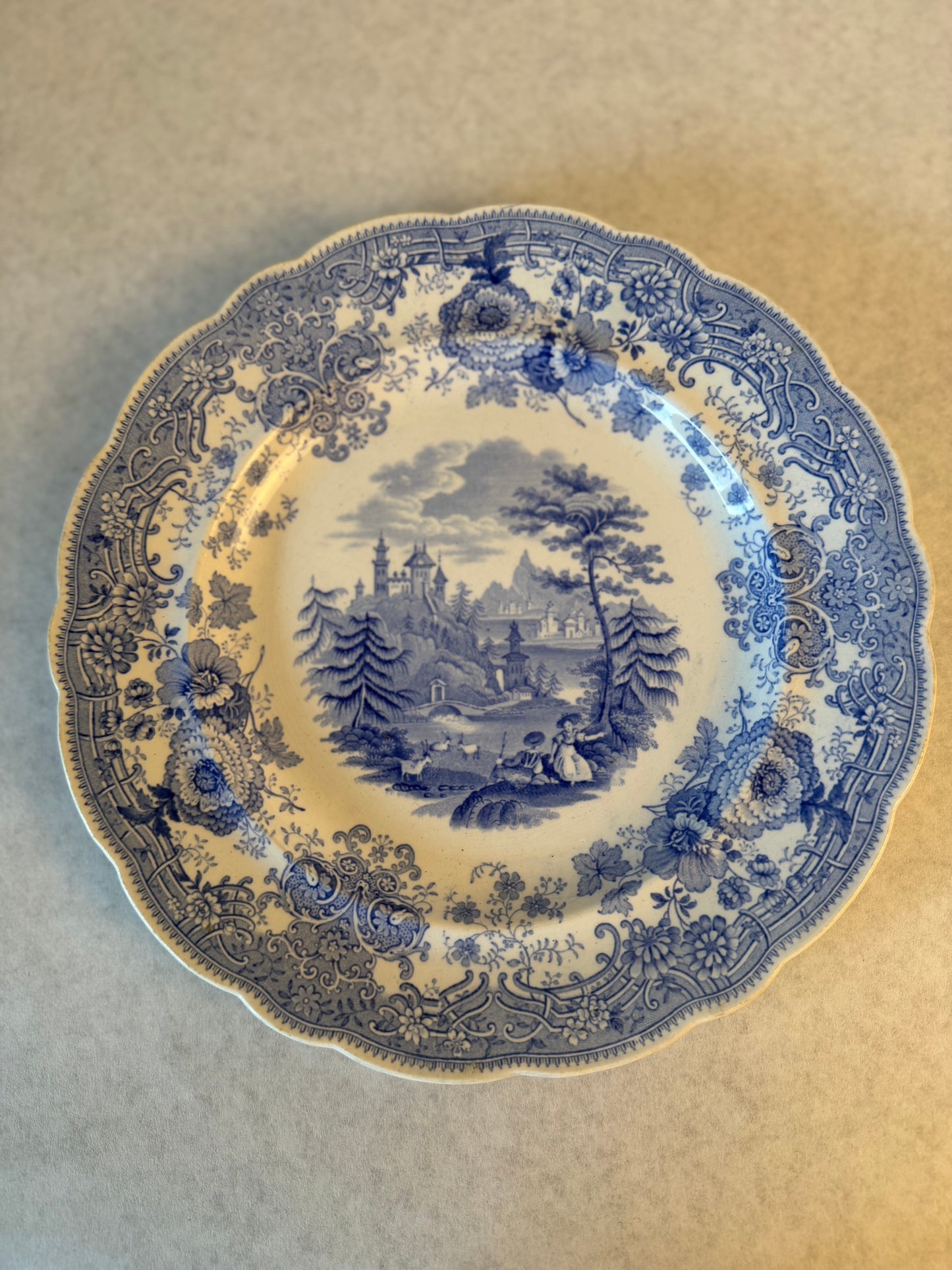 Perfect for a plate wall. Antique transfer ware plates. Beautiful pattern. Tyrolean.