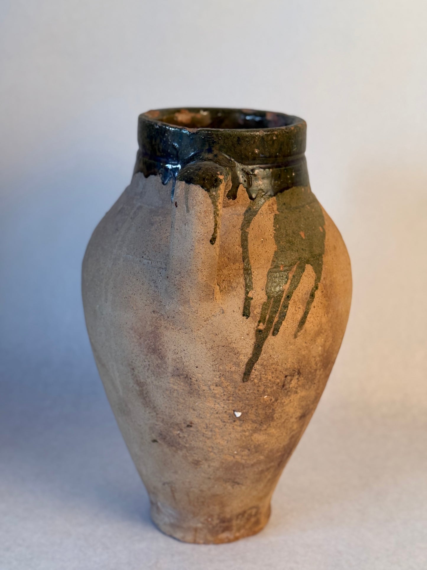 Beautiful Large Antique Stoneware Jug with some Rustic Green Glaze