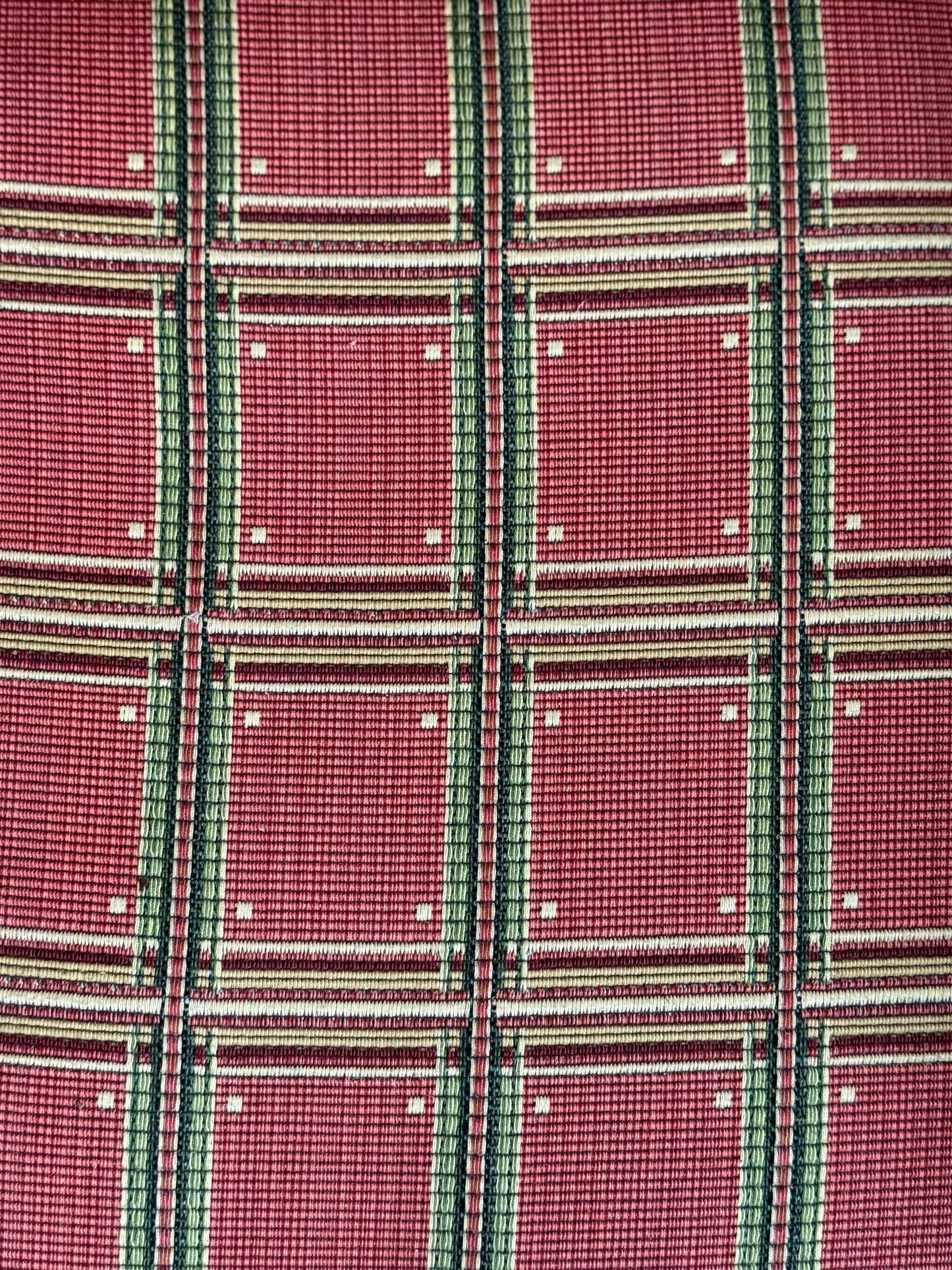 This charming swivel club chair has a pretty soft red windowpane pattern and a cozy down cushion. Stylish and in top shape, it’s ready to spin into your favorite spot with flair.