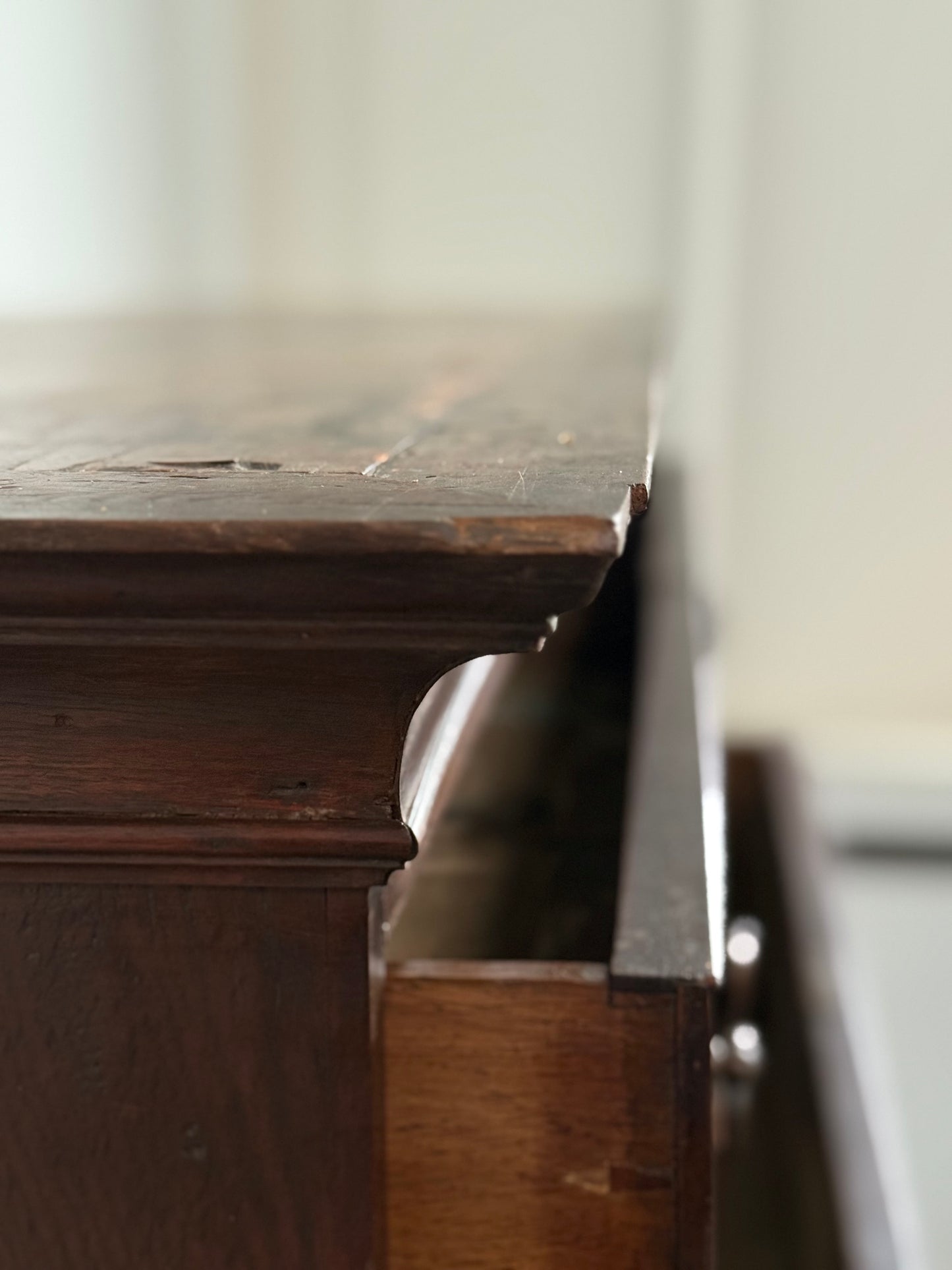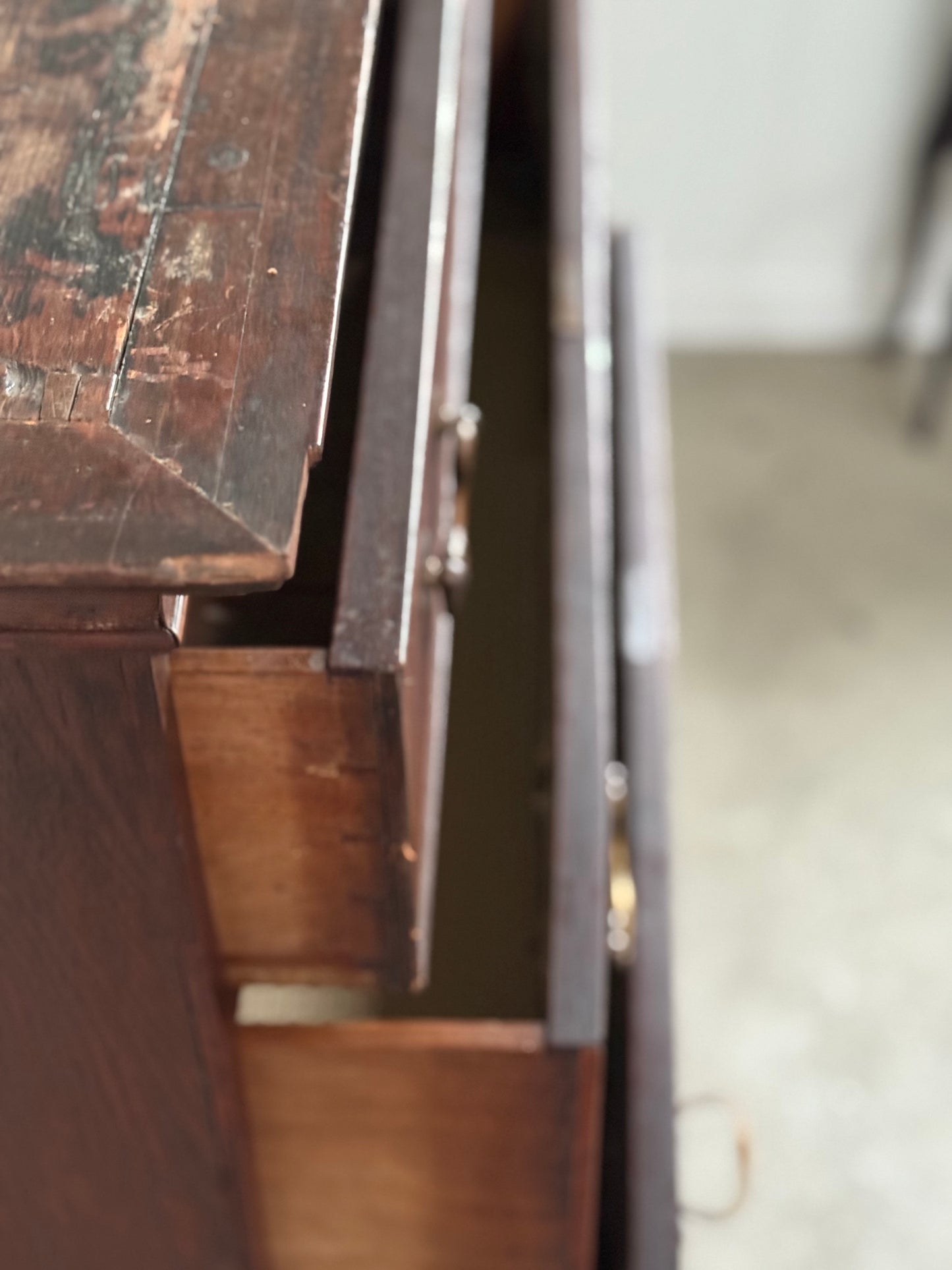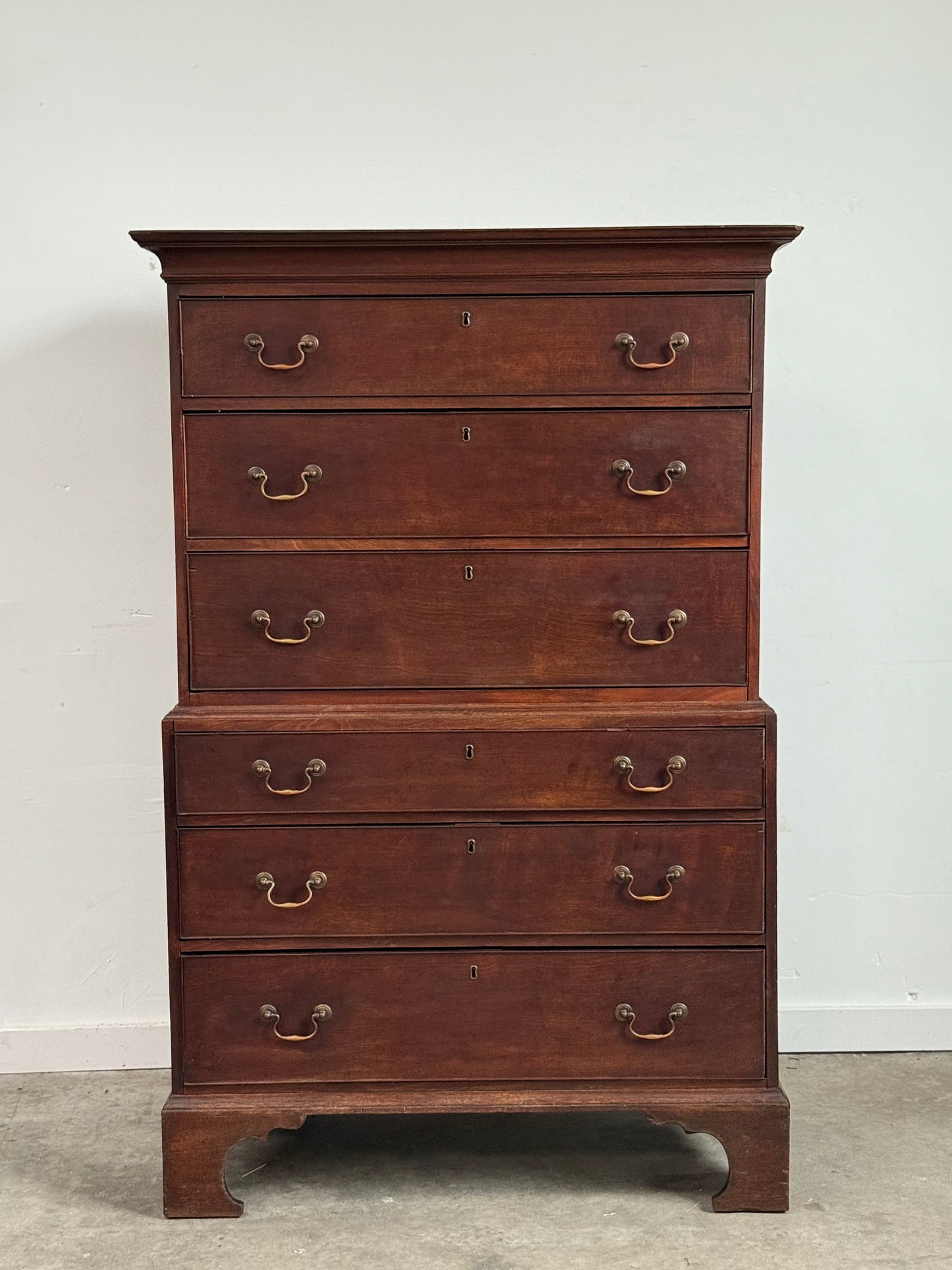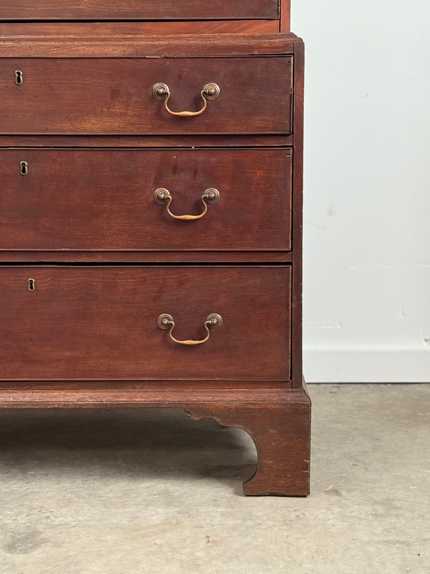 18th Century Chest on Chest of Drawers. Gorgeous in excellent condition with original finish. English Newspaper Lining from 1838. Large and striking Piece.