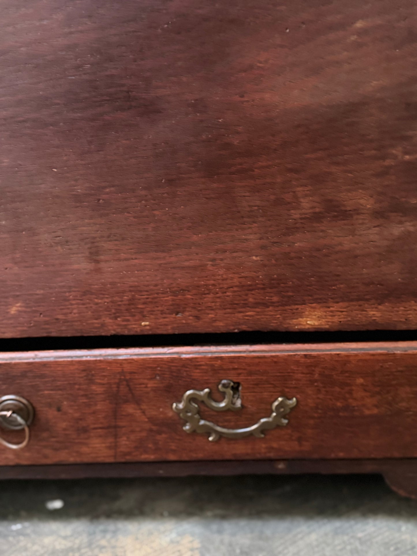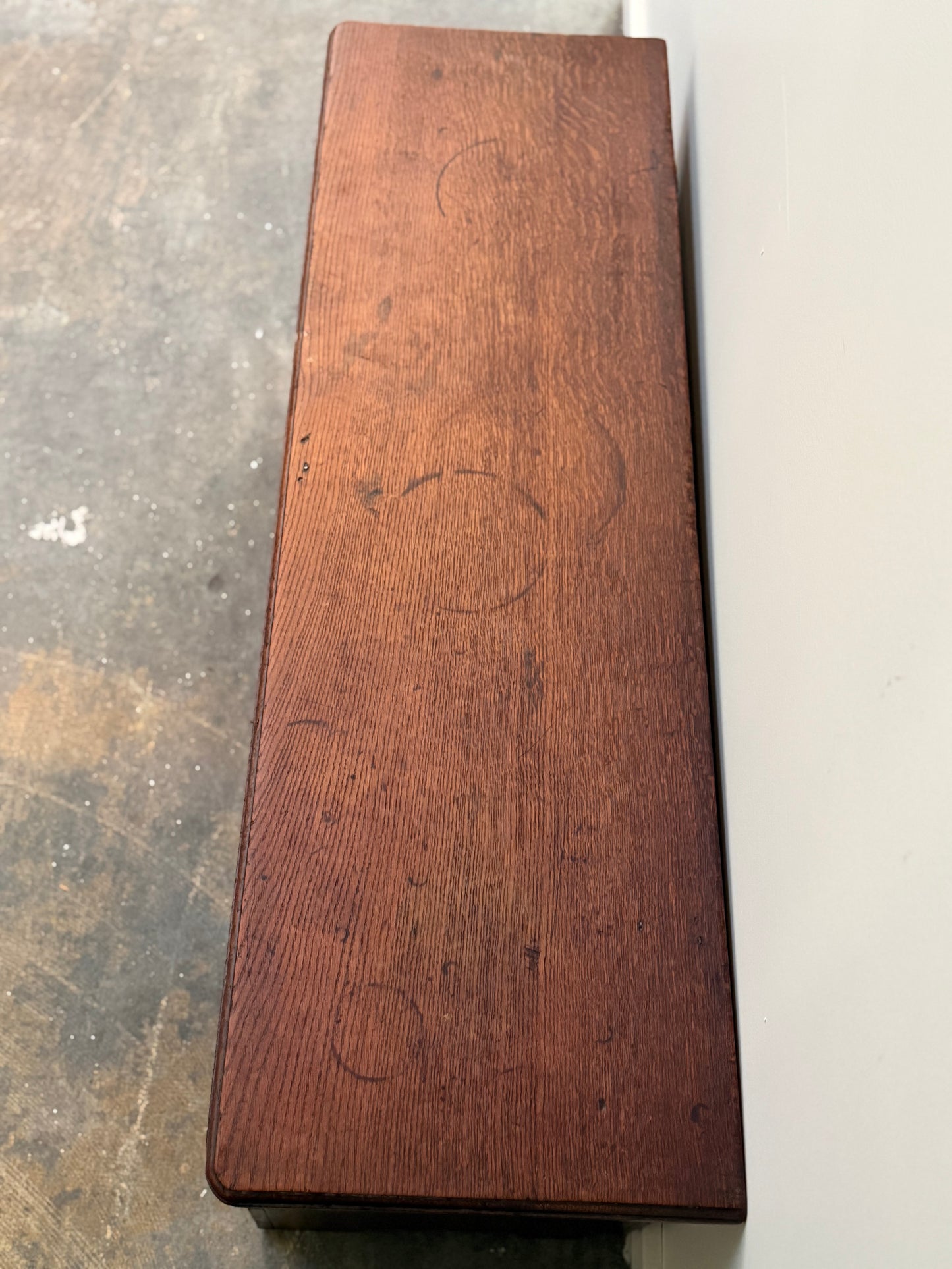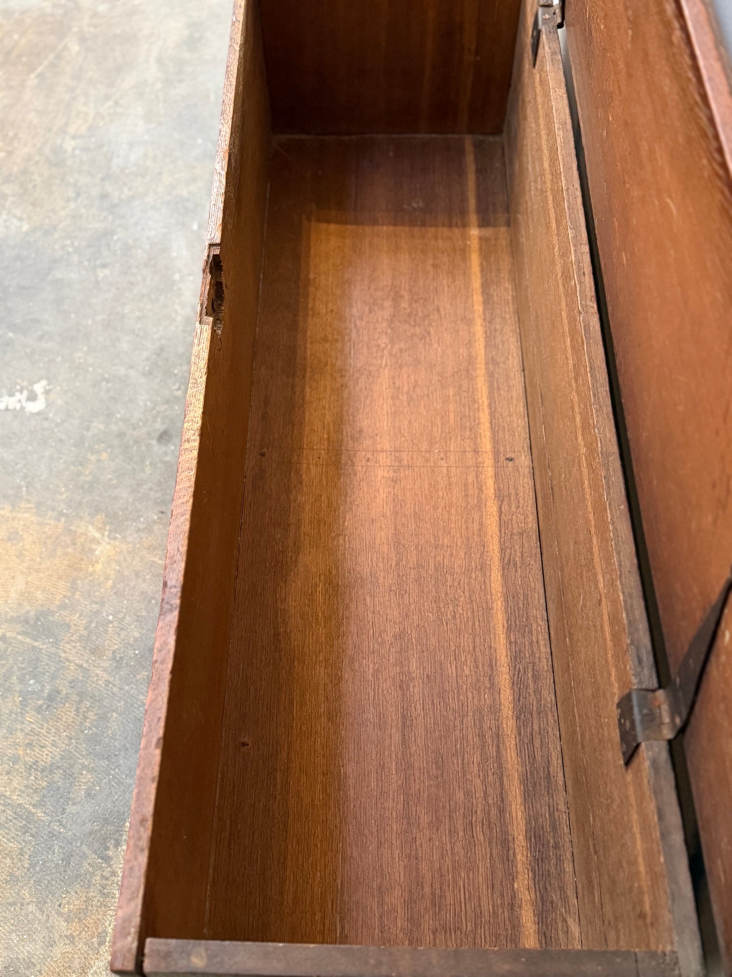Really nice and wide Blanket Chest. Unusual to see 50" and makes it suitable for use at the foot of a larger bed or under a TV. Very clean inside and out. two drawers. Heavy. Oak