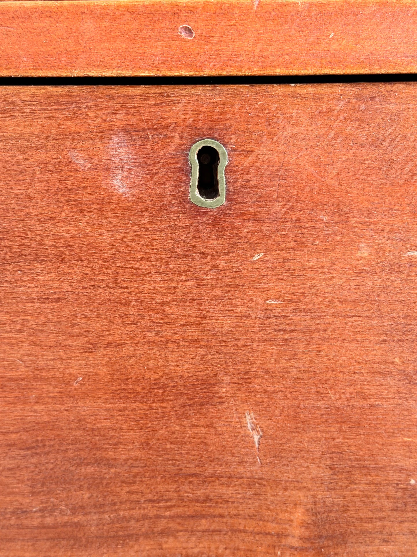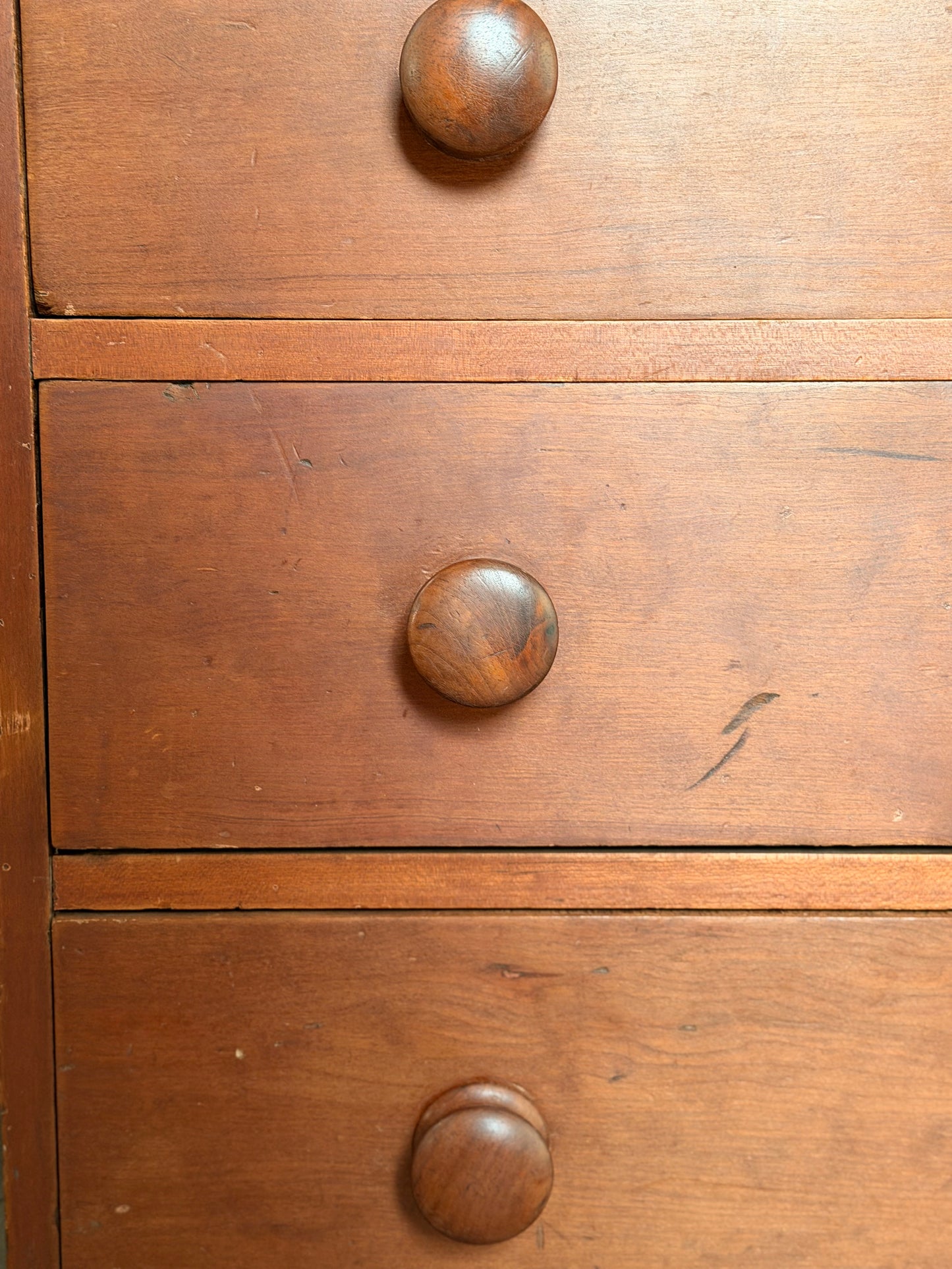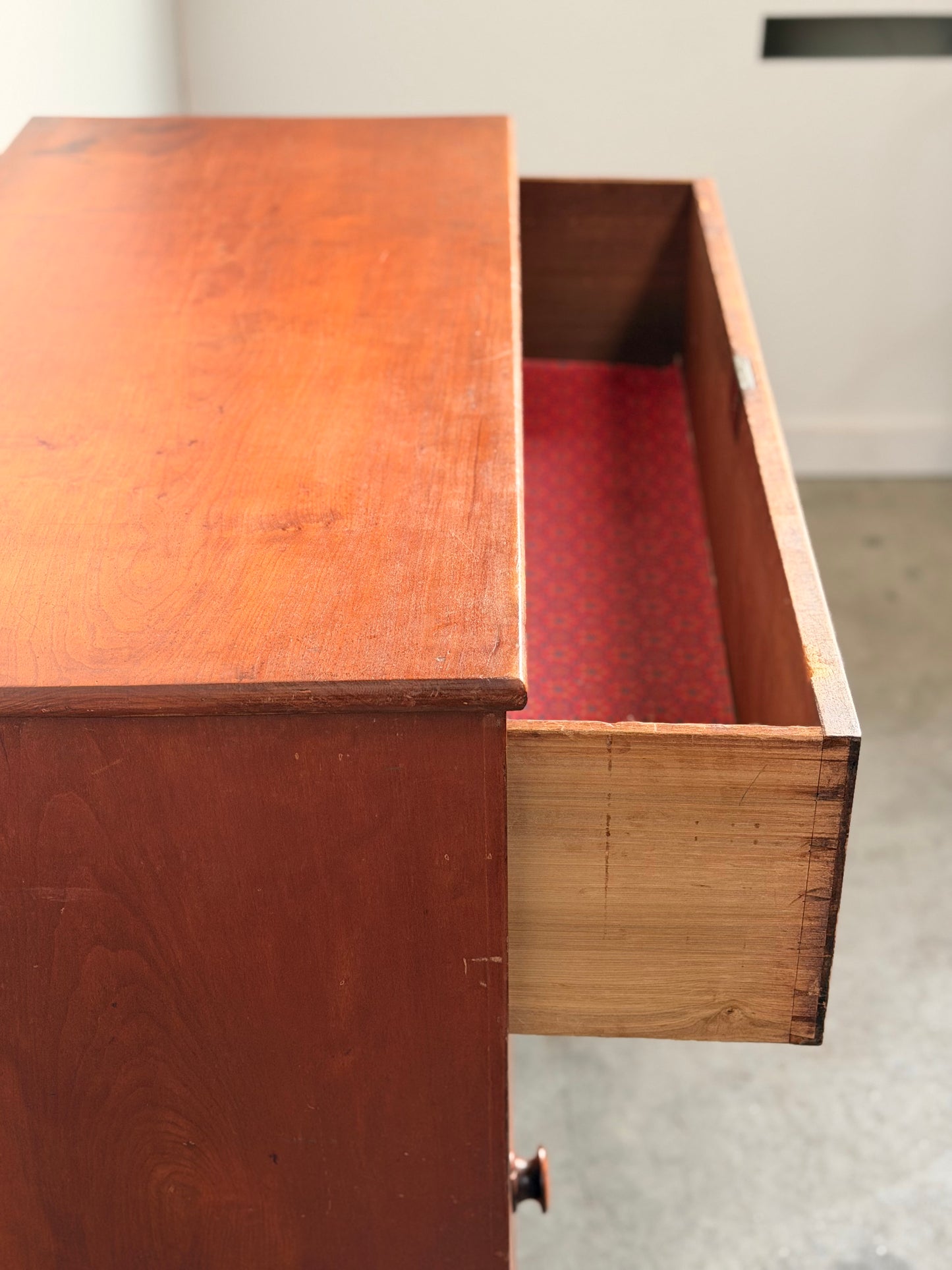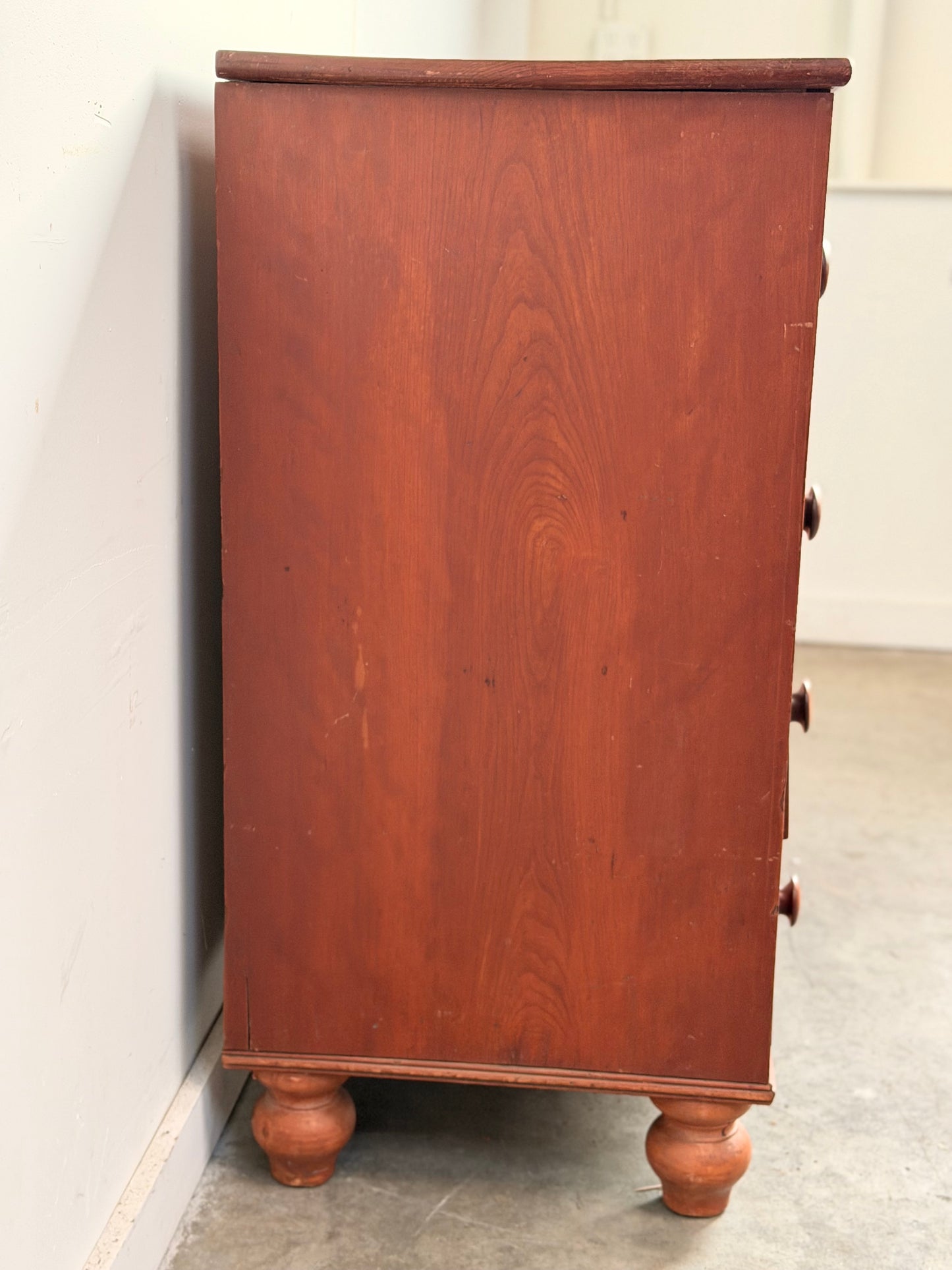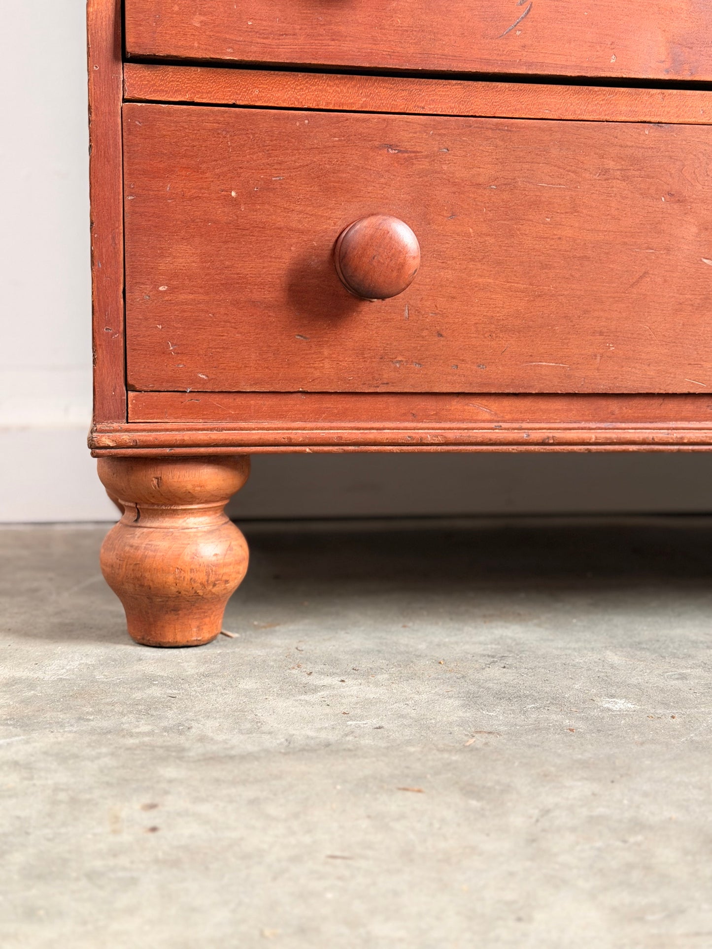 Beautiful 19th Century chest. Four spacious drawers work well with original knobs. The simple style is perfectly elevated by the turned feet, giving this one an elegance we don't always see. Great size as well, it will actually be good storage.
