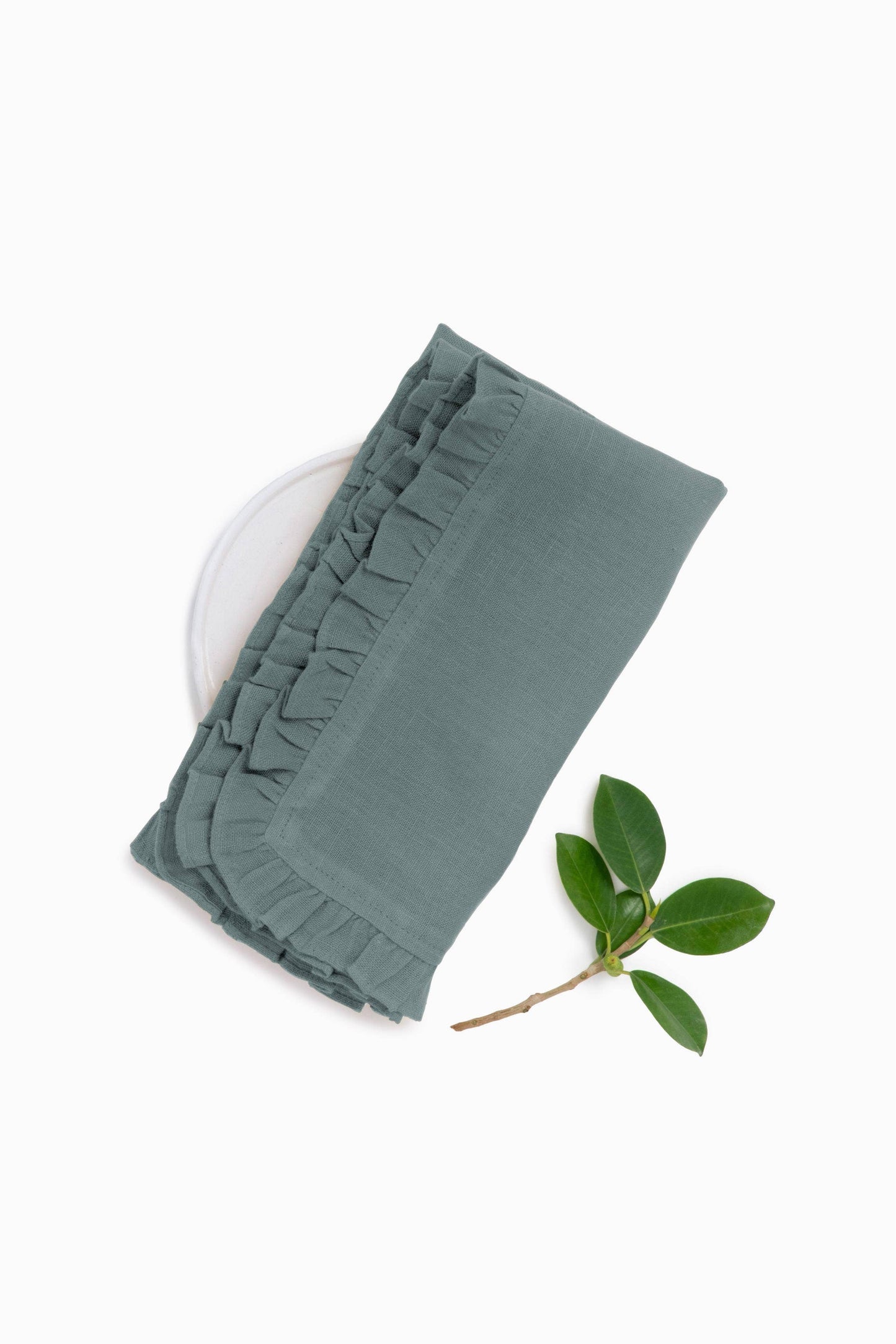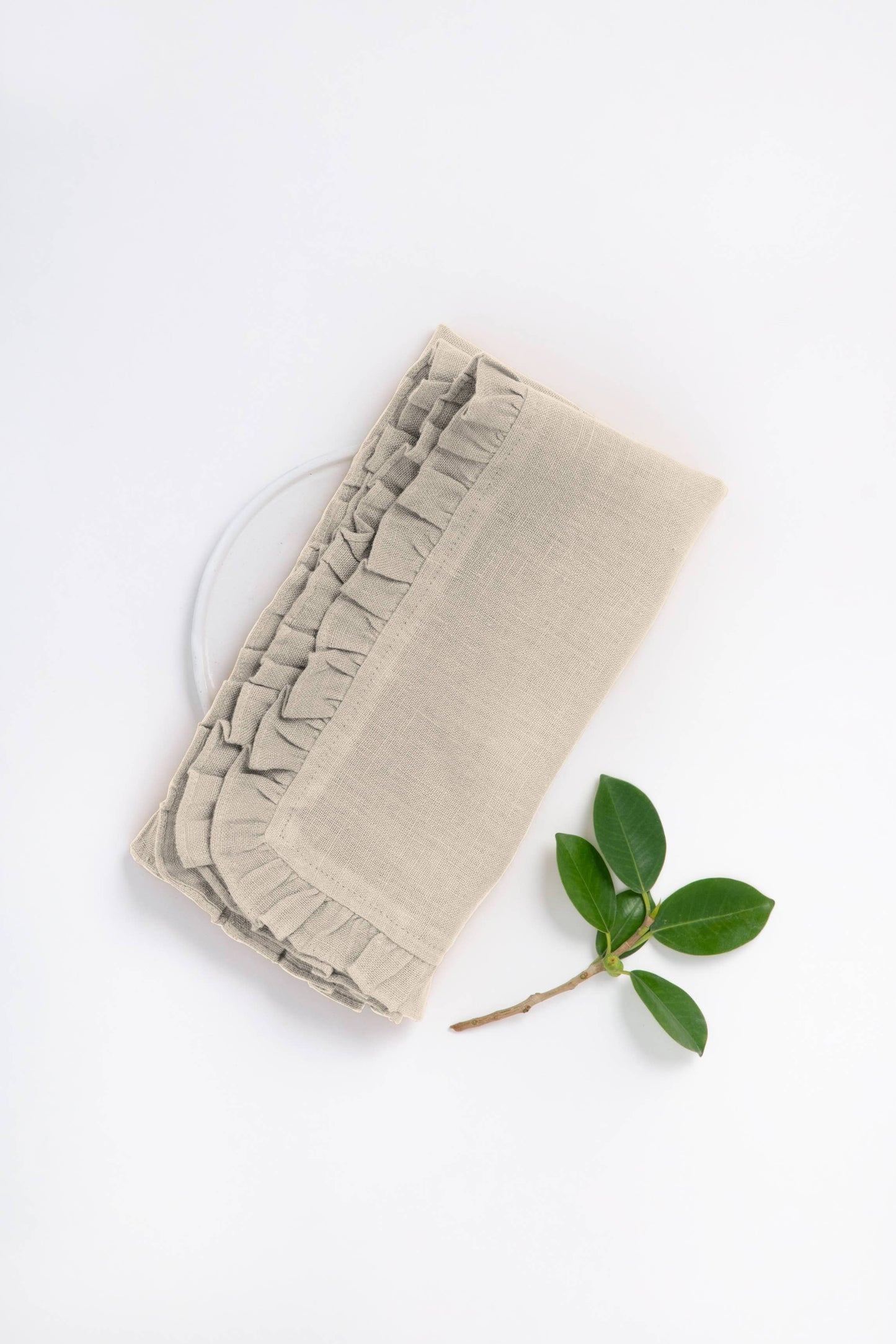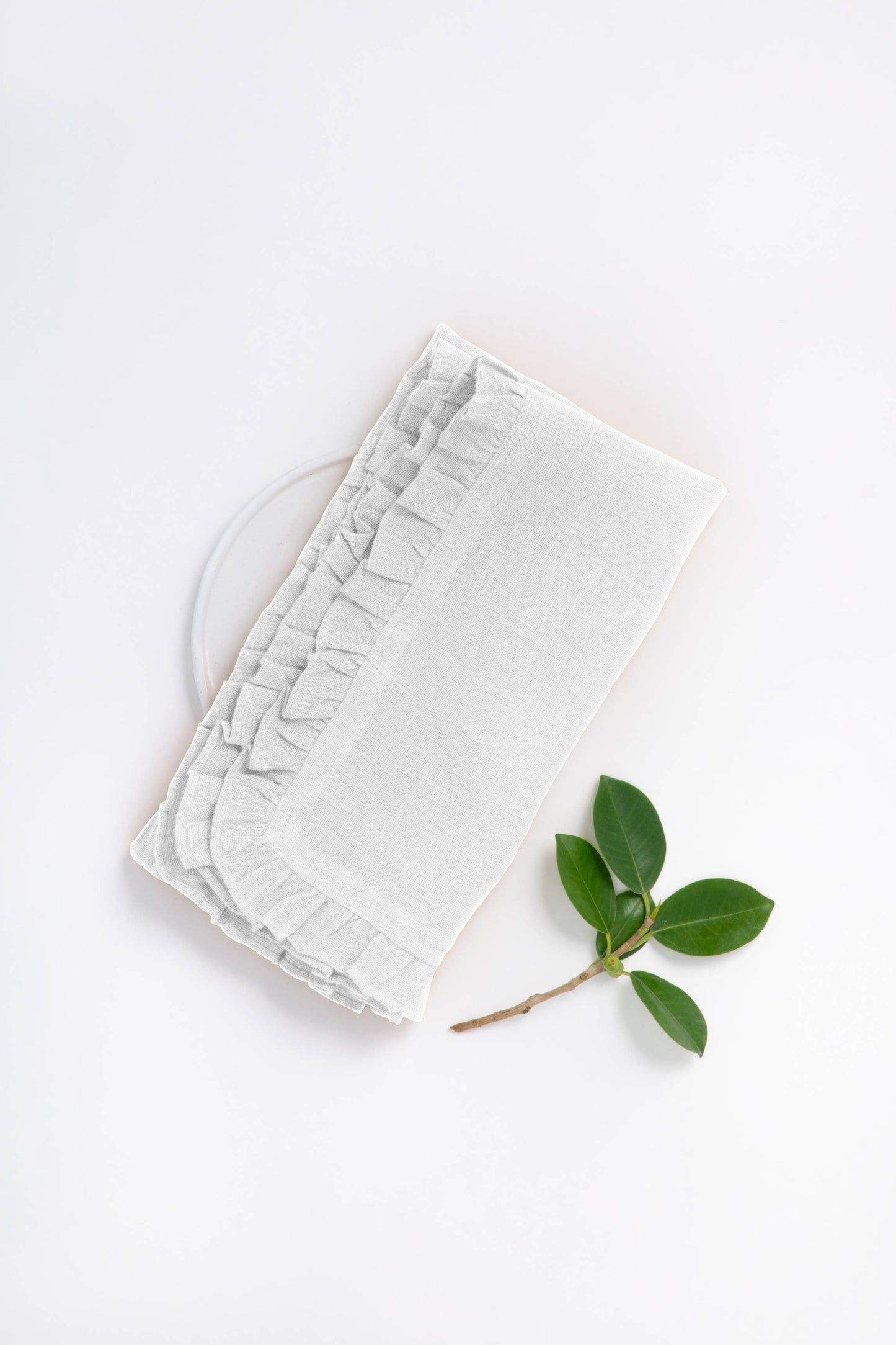 Large Linen Ruffle Napkin Set is made to give your dining area a retro look with the soft ruffle garnished around the entire borderline. Organize your table linens with us today! . OEKO-TEX Certified . European Flax Certified . Washed for Maximum Softness "Includes Two Napkins Made from 100% European Linen Pre-washed for maximum softness"