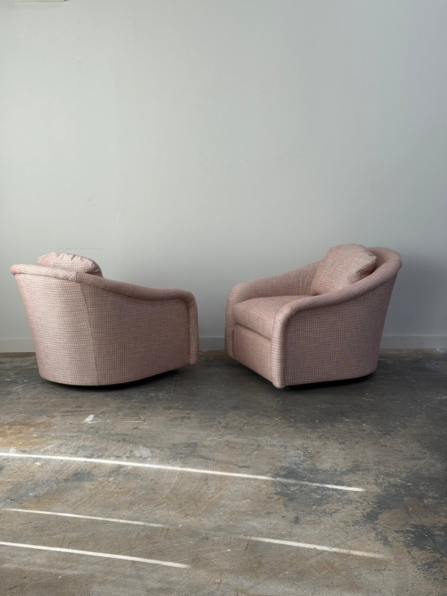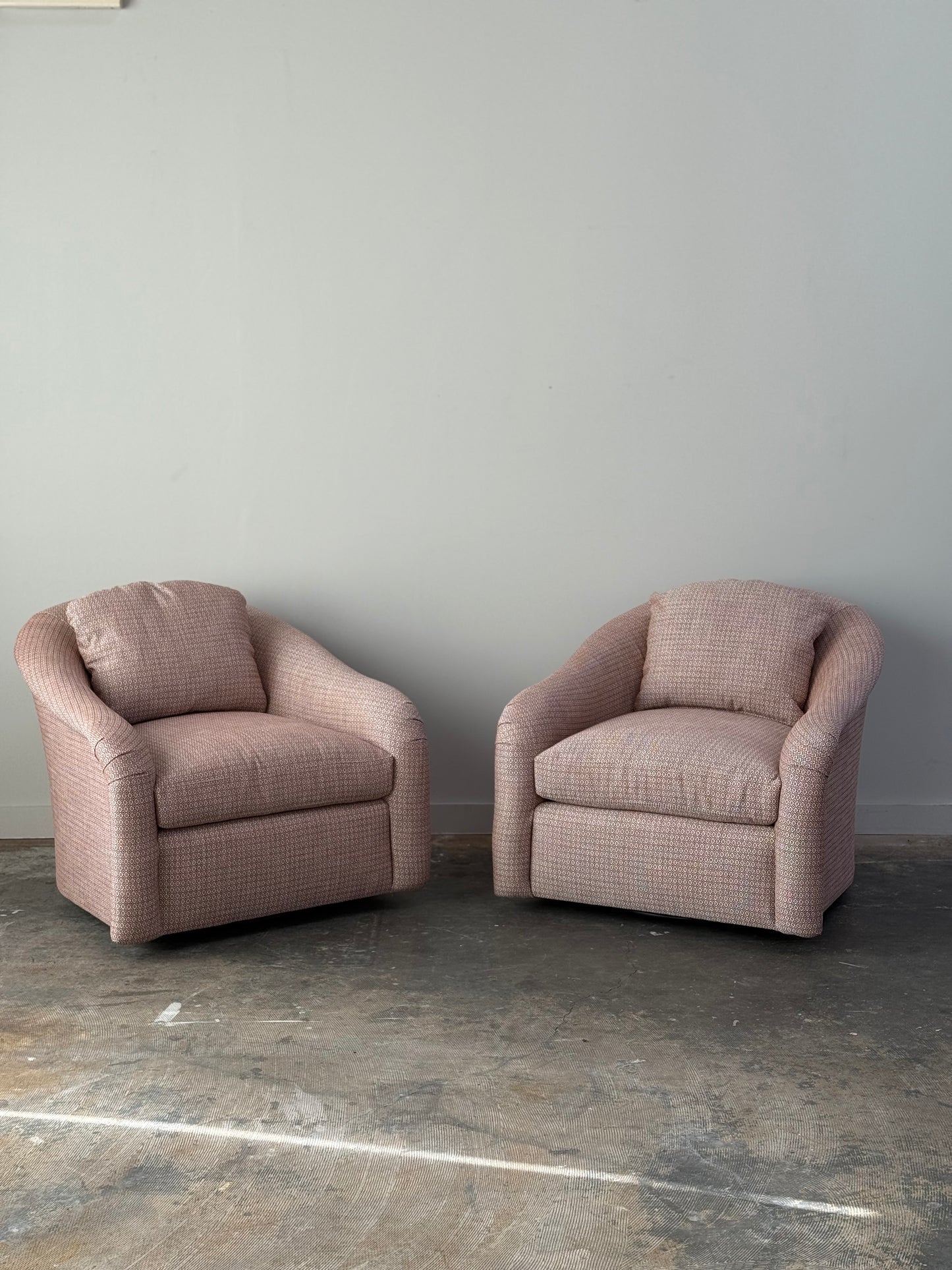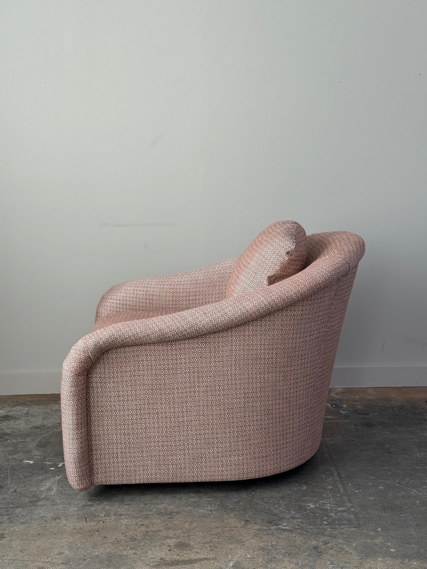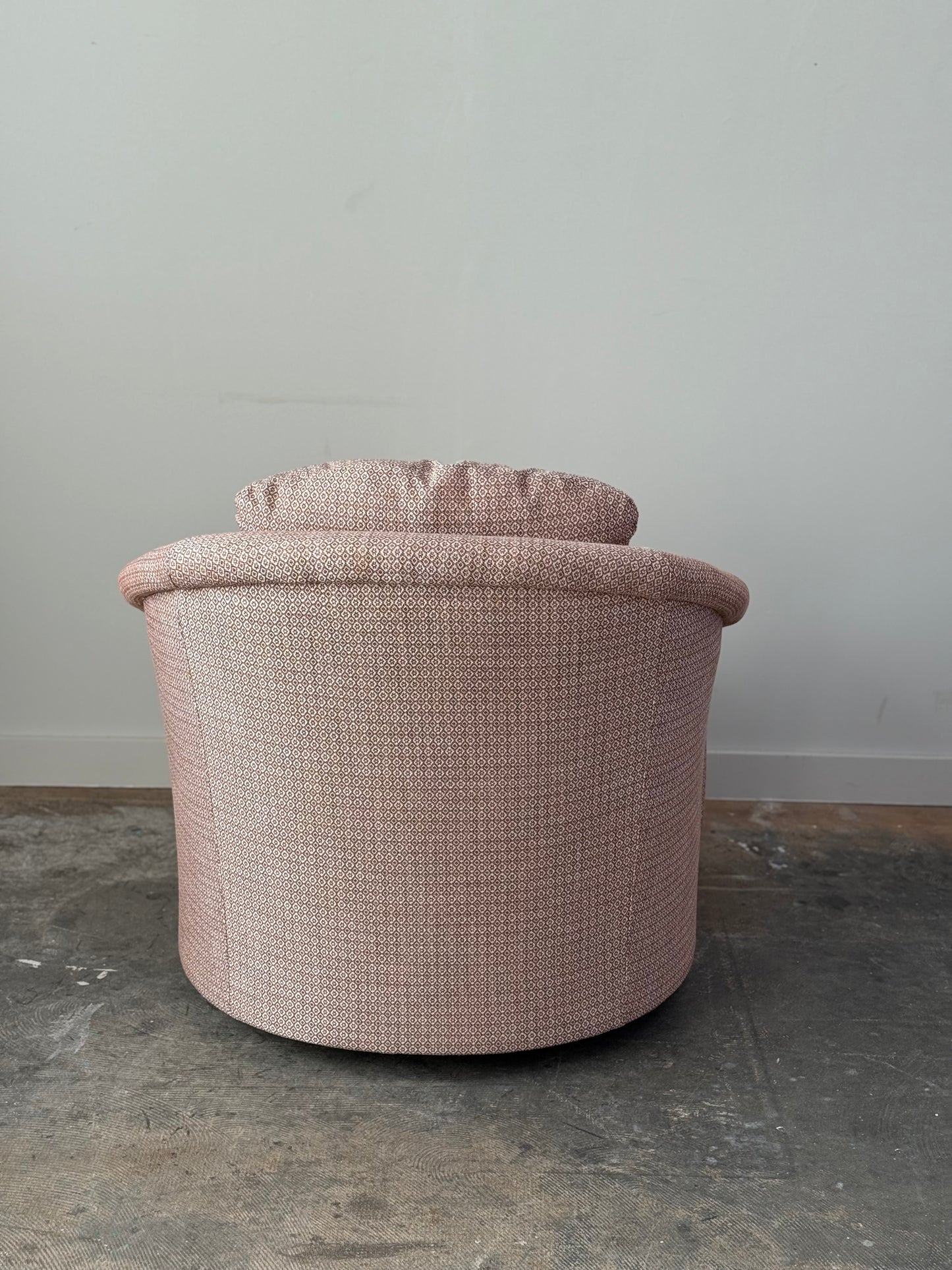 The Percy chair is so stylish and comfortable. A barrel back swivel chair that has a lower profile, nice wide seat and classic rolled arms. One of my favorite chairs. Available in many other fabrics and in a stationary chair as well. Down wrapped spring seat cushion and full down back cushion.
